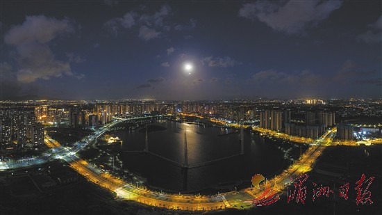 ▲昨晚,中秋之夜,圆月当空,照亮木兰溪畔的玉湖新城。