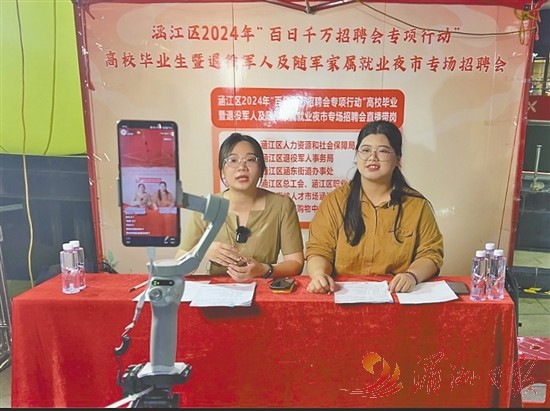 本报讯 9月14日,涵江区人社局联合区退役军人事务局、区总工会等部门及涵东街道办事处,在涵江水韵城广场举办2024年“百日千万招聘会专项行动”高校毕业生暨退役军人及随军家属就业夜市专场招聘会。