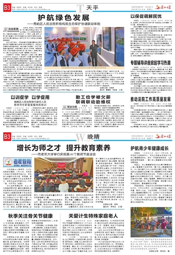 生态兴则文明兴。该院在湄洲法庭建设莆田生态司法展示馆,构建集环境法治教育、司法成果展示于一体的生态环境司法保护宣传阵地。通过组建“法林青述”“法林飞骑”等普法宣讲团队,利用环境日、宪法日、开学第一课等时间节点,该院开展普法进校园、进公园、进码头、进景区等活动,为群众送上生动的“法治课”,增强群众法治观念。