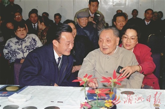 图①:1992年2月10日,邓小平同志在上海贝岭微电子制造有限公司参观时与吴邦国同志交谈。