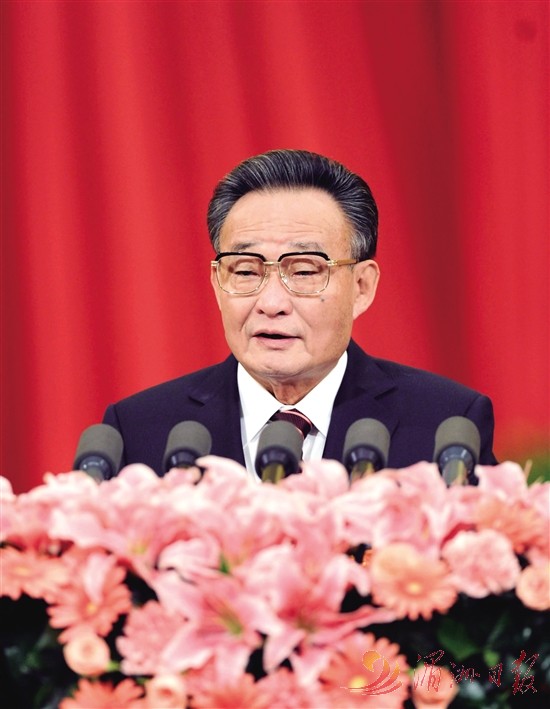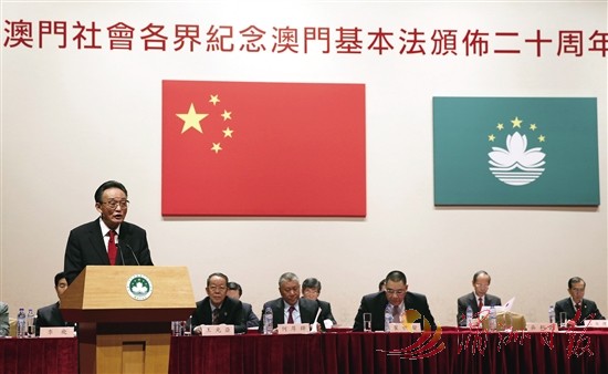 图⑫:2013年2月21日,吴邦国同志在澳门文化中心出席澳门社会各界纪念澳门基本法颁布20周年启动大会并发表讲话。