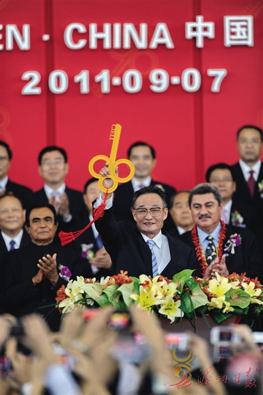图⑨:2011年9月7日,吴邦国同志在福建厦门出席第十五届中国国际投资贸易洽谈会开馆式。