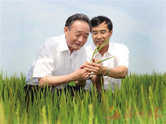 图⑩:2012年7月19日,吴邦国同志在黑龙江农垦建三江管理局二道河农场万亩大地号察看水稻长势。