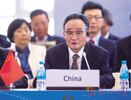 图⑪:2013年1月28日,吴邦国同志在俄罗斯符拉迪沃斯托克出席亚太议会论坛第21届年会,并作题为《坚持和平发展 促进合作共赢》的主旨发言。