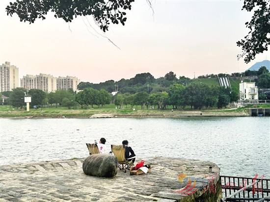 木兰陂公园碧波荡漾,绿树成荫,景色秀丽,成为市民休闲娱乐的好去处。图为10月27日,市民在木兰陂公园休闲放松。全媒体记者 李怡桢 摄