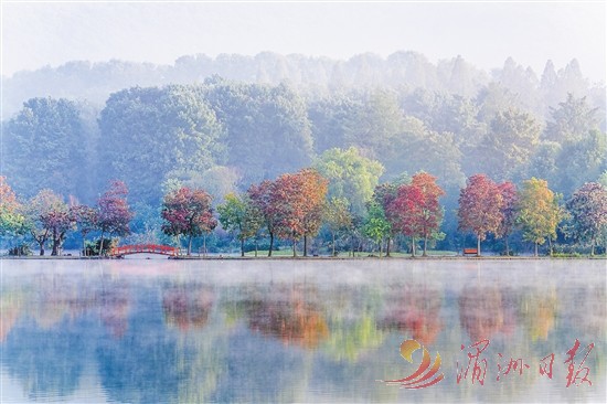 这是近日拍摄的江苏省南京市钟山风景区前湖秋色。金秋时节,神州大地层林尽染,色彩斑斓,秋色宜人。 新华社 发