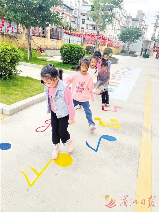 走进码头小学校园,只见操场空地上绘制了一一幅幅色彩亮丽的儿童游戏图案,包括跳房子、拼音大闯关、比大小、安全知识我知道、跳动的音符等。平淡无奇的地面“颜值”随之攀升,不仅为校园增添亮丽的风景,更激发孩子们的好奇心和探索欲。课间,同学们三五成群地聚集到场地,开展各种丰富的地面游戏活动,玩得不亦乐乎(如图)。