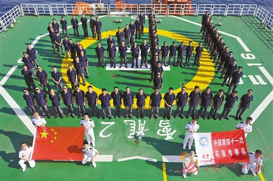 考察队在“雪龙”号和“雪龙2”号分别举行了穿越赤道纪念活动。“雪龙2”号上,队员们排列成“S41”字样的队形合影留念,举行拔河、套圈等趣味比赛,以简单而热烈方式告别北半球,继续向南极挺进。