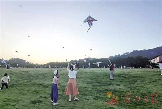 最近天气晴好,不少市民在周末时间带上家人在市区南湖公园草地上放风筝、玩游戏等,享受惬意时光。