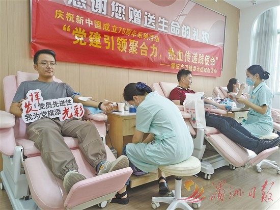 近日,市卫健委机关及直属单位党员、共青团员、志愿者在市中心血站开展集体无偿献血活动,16人献出鲜血4500毫升。林铁辉 摄