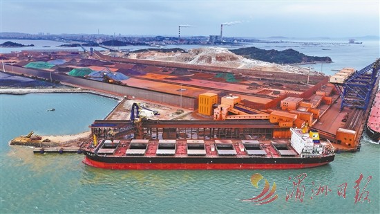 本报讯 11月13日上午,在北岸经开区东吴港区罗屿作业区,一艘“中港世纪”轮停靠在10号泊位装船作业(如图),准备装载7.7万吨铁矿石发往台湾高雄。湄洲湾港口发展中心统计数据显示,今年以来,罗屿作业区对台铁矿石中转量达322.88万吨,同比增长22.95%,对台铁矿石中转量连续多年位居全国第一。