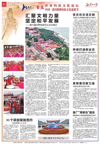 肖长培表示,要以举办“闽台文旅融合发展论坛”为契机,强化妈祖文化纽带,促进海峡两岸的新朋老友通过活动交友交心、越走越亲,续写两岸融合发展崭新篇章。省文旅厅将鼓励更多台湾同胞和文旅界人士参与到妈祖文化传承、发展和创新的进程中来,共享做大做强做优文旅经济红利,促进两岸同胞心灵契合。