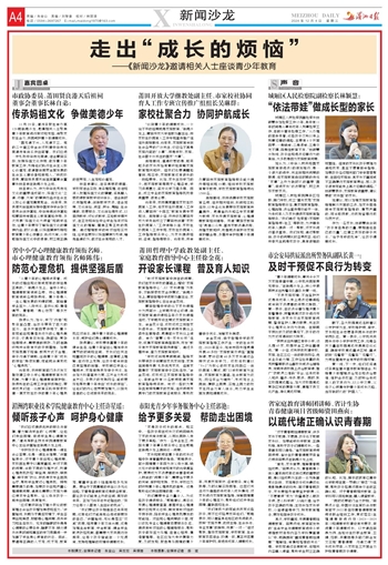 11月29日,湄洲日报社举办第129期新闻沙龙,邀请相关人士聚焦青少年教育进行探讨和支招,凝聚家校社合力,共同呵护青少年健康成长。