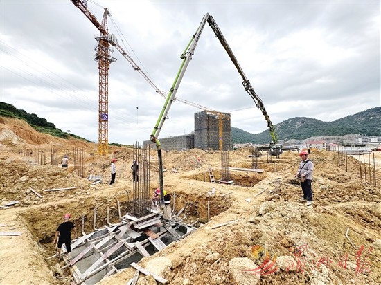 富力智造产业园由富力集团投资建设,一期计划建设总建筑面积约45万平方米的标准化厂房和配套设施,建设自动化、智能化鞋服生产线。图为该项目施工现场。全媒体记者 林罗晓 摄