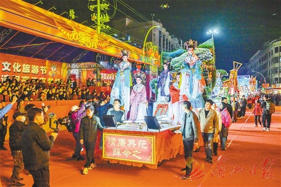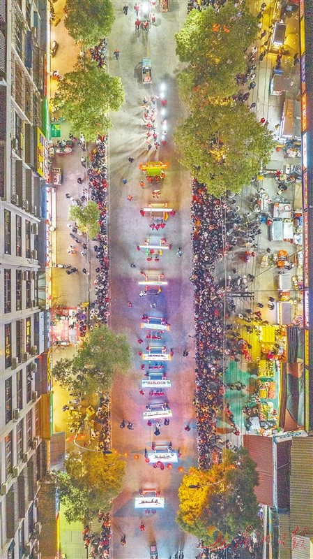各地的游客纷纷赶来观看盛大的踩街活动。