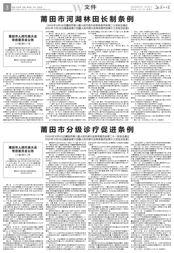 《莆田市分级诊疗促进条例》已于2024年10月25日经莆田市第八届人民代表大会常务委员会第二十一次会议通过,于2024年11月28日经福建省第十四届人民代表大会常务委员会第十三次会议批准,现予公布,自2025年1月1日起施行。