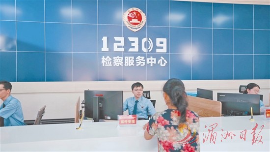 检察干警在12309服务大厅接待来访群众。