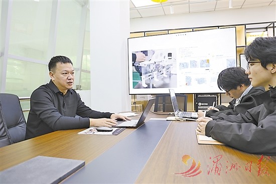 担任“科技副总”的湄职院智能制造工程系实训中心主任陈威与企业技术骨干在研讨。