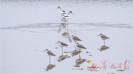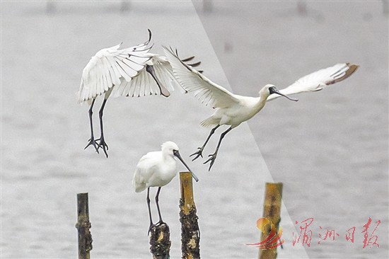木兰溪入海口湿地公园里,黑脸琵鹭等鸟类惬意栖息。