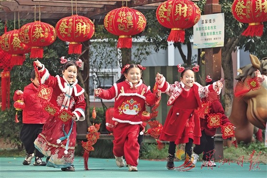 12月26日,在浙江省湖州市德清县中心幼儿园,孩子们参加传统民俗活动。元旦将至,各地中小学校和幼儿园组织多彩活动,欢乐喜庆迎接新年。新华社 发