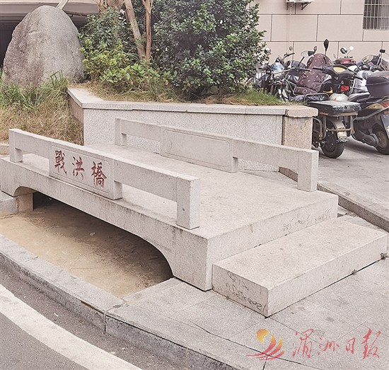 “壶兰七境苑”安置小区内,战洪桥旧址建起的“战洪桥”微缩景观。