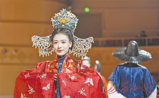 1月5日,模特在中华民族历朝历代服饰秀上进行展示。由西藏自治区文化和旅游厅主办的首届西藏“衣脉相承”服饰文化周活动正在拉萨举行。1月5日晚,中华民族历朝历代服饰秀、现代藏装秀等展示活动在拉萨市西藏大剧院相继亮相。新华社记者 晋美多吉 摄