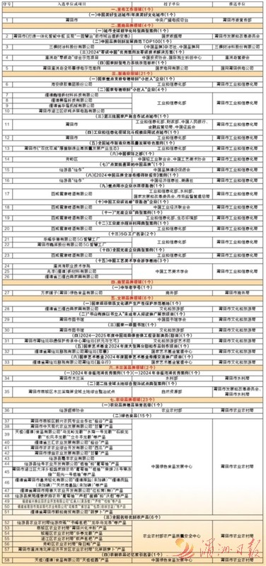 (注:以下品牌荣誉榜名单由市工信局会同其他相关牵头单位收集汇总)