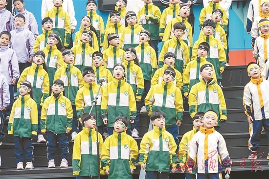 近日,城厢区第三实验小学举行“薪火照亮征程 运动铸就未来”运动会。图为学生们在开幕式上展示班级风采。 许金珊 摄