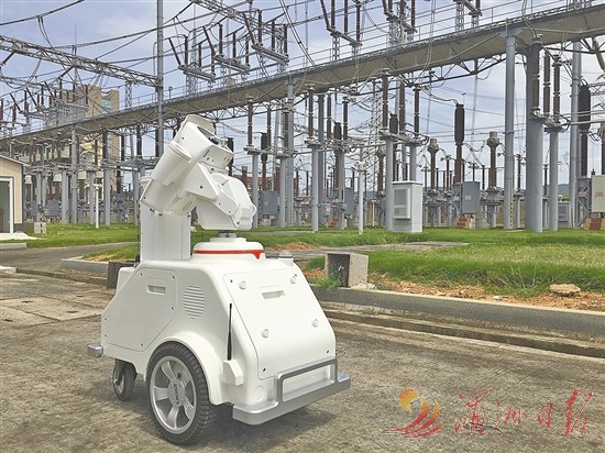 图为国网莆田供电公司运用智能巡检机器人巡视变电站设备。