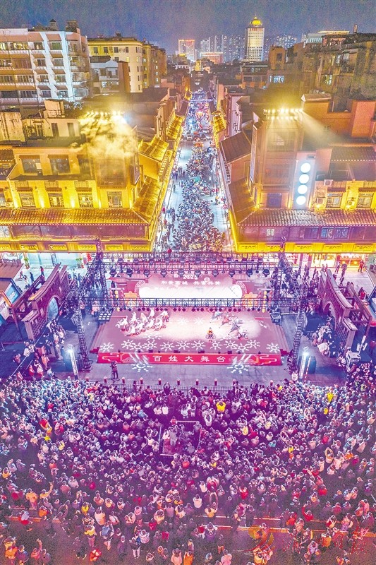 昨晚,“欢腾年俗在荔城”活动在古谯楼广场启动,莆仙戏、舞蹈、杂技等节目轮番上演。“既饱眼福又饱口福。”站在古谯楼上看风景的游客张晋拍个不停,赞叹夜市比以前业态更丰富,也更热闹了。