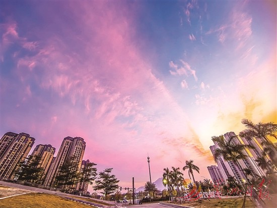 玉湖新城环湖公园是玉湖新城的核心景观带,视野开阔,绿化优美。落日余晖洒在公园内,晕染出如诗如画的美丽画卷。