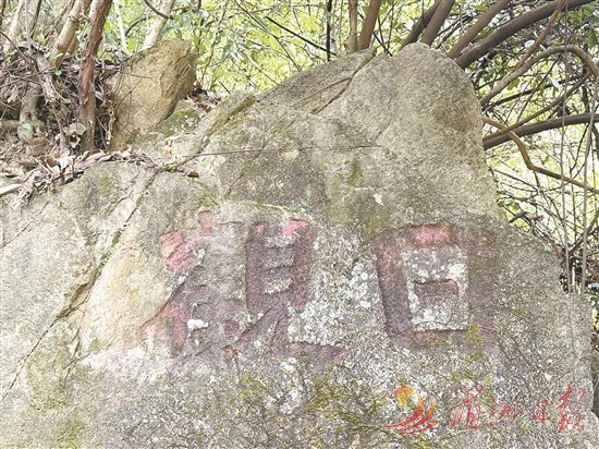 山腰有一处隶书石刻,当地百姓及一些记载称“观日”,笔者认为应自右往左读作“日观”。