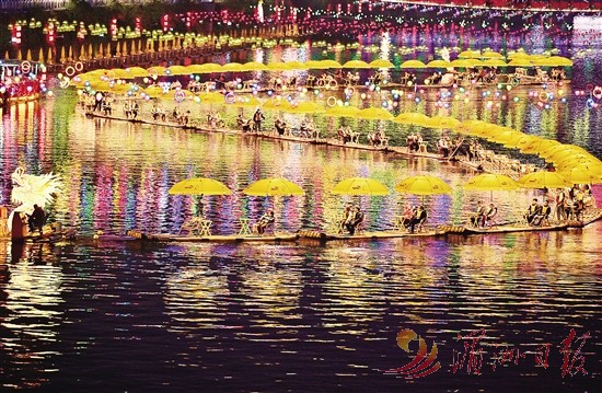 1月21日晚,游客在湖北省宣恩县贡水河中乘坐竹筏赏夜景。蛇年春节将至,各地张灯结彩,人们参加各种喜庆活动,红红火火迎新春。新华社 发