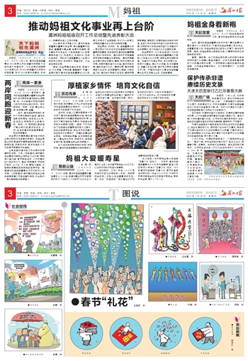 本报讯 1月22日,农历甲辰年腊月廿三,是北方民间俗称的“小年”。为展现国家级非物质文化遗产、传承津沽文化、弘扬妈祖精神,天津天后宫隆重举行乙巳年天后宫春祭大典,进一步扩大天津古文化街及天后宫品牌影响力与民俗文化的感染力。
