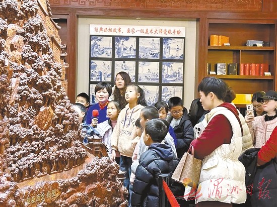 活动中,妈祖义工傅舟莲带领大家参观了湄洲妈祖祖庙莆田会馆,通过详细讲解展厅内丰富的展品和史料等,让他们了解妈祖的生平事迹、妈祖信俗的传承与发展等(如图)。随后,大家还体验了妈祖信俗的重要组成部分三献礼。体验过非遗项目后,民俗专家林洪国为学生和家长们带来了一场精彩的莆仙民俗讲座。他用通俗易懂、生动有趣的语言,从莆仙传统节日、民间艺术、特色美食等方面,彰显莆仙民俗的独特魅力。