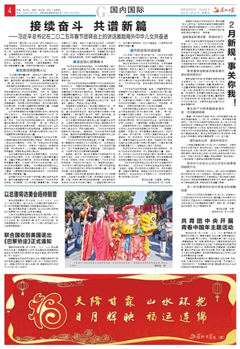 共青团新媒体矩阵开设“青春中国年·巳巳如意”专栏,发起“这是我的年夜饭”“晒晒我的全家福”“节日看家乡”“我和我的家乡”“我是青春守护者”等话题,联动各级各领域团组织开展主题传播活动。