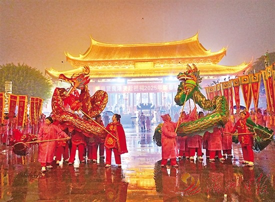 本报讯 (全媒体记者 傅梅香/文 见习记者 杨洲/图)2月12日,农历正月十五,北岸贤良港天后祖祠举办“上元祈福拜妈祖闹元宵”传统民俗活动(如图)。尽管当晚细雨绵绵,但活动现场依然人潮涌动,热闹非凡,吸引了众多市民和外地游客前来观看。