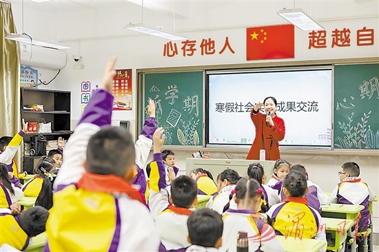 昨日,市第二实验小学三年三班以“新学期,心期待”为主题,开启开学第一课。图为课堂上,学生们踊跃举手发言。 吴一心 许金珊 摄