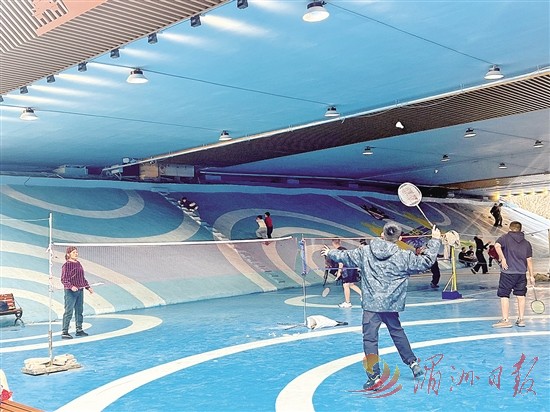我市因地制宜,不断完善全民健身设施,为市民运动提供好去处。图为市民在绶溪畔一场地打羽毛球。