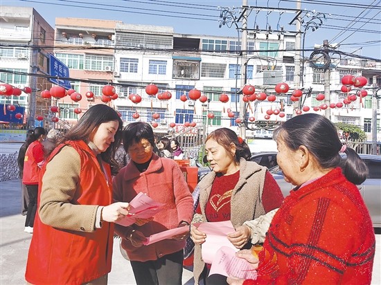 作为全市首个省级婚俗改革实验区,荔城区倡导适婚青年不相互攀比,提倡文明简约办婚礼。图为近日,黄石镇党员志愿者在井后村开展宣传,引导喜事新办,树立文明新风。翁国城 蔡朝星 摄