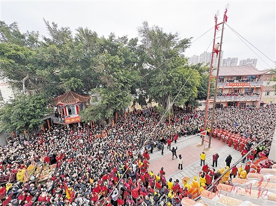 本报讯 (全媒体记者 林英/文 林罗晓/图)2月16日,农历正月十九,北岸经开区山亭镇莆禧村举行爬刀梯闹元宵活动,重现英勇无畏的抗倭精神,吸引了众多市民和外地游客前往现场观看(如图)。