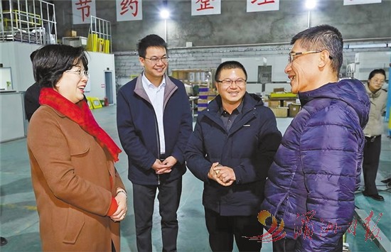 涵江区领导深入企业看望台籍人才梁秉文博士(右)。