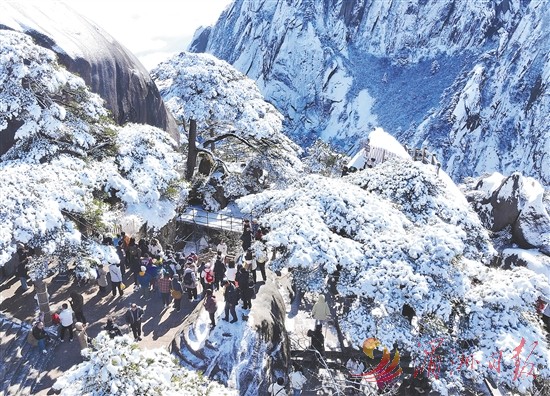 近日拍摄的安徽黄山风景区景色。雪后初霁,黄山银装素裹,宛如仙境。