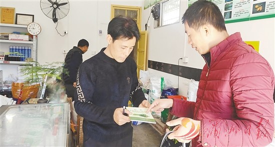 图为涵江农技人员深入各农资供应点,指导农民科学采购农资,并传授农业新技术。(朱秀花 黄望 文/图)