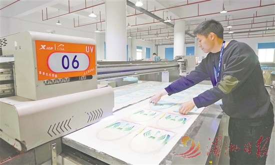 3月3日,笔者走进该公司数字化生产车间,只见一台台高精准度的UV平板机正进行高速打印。这是一款工业级高速、高精度的UV平板打印机,能够满足客户大批量订单的生产需求。