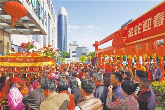 2月16日,位于城厢区霞林街道的喜盈门商场内,福建省非物质文化遗产黄石浦口宫红桔塔首次入驻,为市民与商户呈上一场兼具视觉震撼与深厚文化内涵的盛宴,开启莆田春节文化商贸新体验。