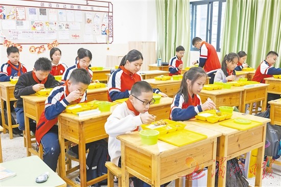 我市各级学校时刻绷紧食品安全这根弦,以“时时放心不下”的责任感,做好日常管控和风险排查,切实筑牢校园食品安全防线。图为昨日中午,城厢区文献小学学生在校内有序用餐。许金珊 摄