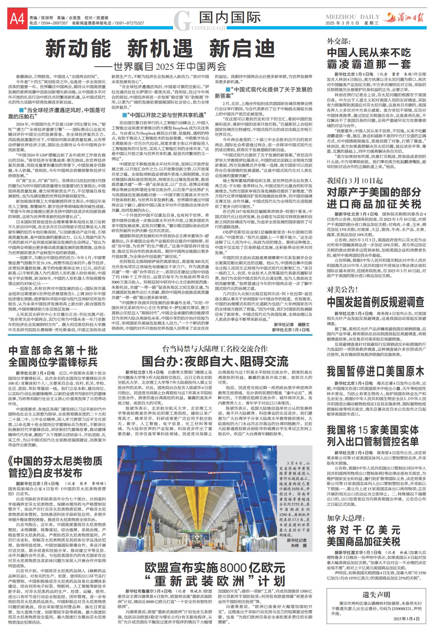 A1 要闻 A2 要闻 A3 聚焦全国两会 A4 国内国际 B1 产经 B2 城厢观察 教育 B3 天平 晚晴 B4 卫生