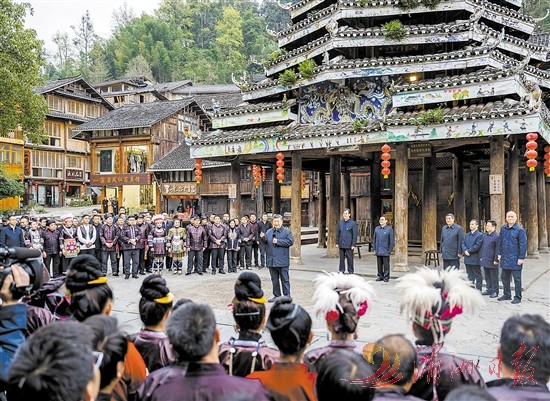 17日下午,习近平来到黔东南州黎平县肇兴侗寨考察。寨门口,身着民族盛装的村民唱起侗族大歌欢迎总书记。习近平饶有兴致地听取侗族大歌的艺术起源、曲调特点、演唱形式等方面介绍。随后,沿着村寨路道察看侗寨风貌和旅游商铺,不时驻足与店主、游客、村民互动交谈。在侗族文化展示中心,他详细了解侗族历史、风俗和服饰、建筑等特色文化保护传承情况。在侗乡特色产业基地,他观看蜡染工艺流程,对蜡染合作社坚持顾客至上、质量第一的运营理念给予肯定。习近平指出,少数民族文化是中华文化不可或缺的组成部分,既要保护有形的村落、民居、特色建筑风貌,传承无形的非物质文化遗产,又要推动其创造性转化、创新性发展,让民族特色在利用中更加鲜亮,不断焕发新的光彩。