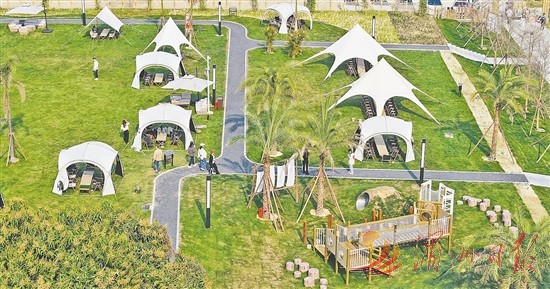 3月27日,城厢区钟潭片区一处由旧厂区改造的露营基地吸引众多户外爱好者前来休闲娱乐。